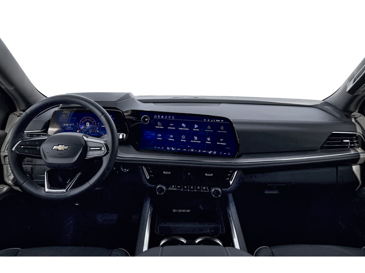 Bergstrom Chevrolet GMC Cadillac of Manitowoc wants to buy your vehicle - even if you don't buy ours. Get your free and quick offer to purchase. To get our top dollar offer, call our Bergstrom Buying Team Hotline at 920-429-6222. Advanced Trailering Package (Blind Zone Steering Assist with Trailering, Hitch View with Pan/Zoom Image Adjustment, and Smart Trailer Integration Indicator), Max Trailering Package (2-Speed Active Electronic AutoTrac Transfer Case, Hill Descent Control, and Integrated Trailer Brake Controller), Premium Liner Protection Package (3rd Row All-Weather Floor Liners, All-Weather Cargo Mat, and First and Second Rows Premium Floor Liners), Sun and Tow Package (Dual-Pane Power Panoramic Sunroof), 4WD, Jet Black Leather, 3 Years SiriusXM, Set of 4 Wheel Locks, Wheels: 22" x 9" Polished Aluminum, 10 Speakers, 1st and 2nd Row Color-Keyed Carpeted Floor Mats, 3-Spoke Wrapped Steering Wheel, 3.23 Rear Axle Ratio, 3rd Row 60/40 Power-Folding Split-Bench Seat, 3rd row seats: split-bench, 4-Way Power Driver Lumbar Seat Adjuster, 4-Way Power Front Passenger Lumbar Seat Adjuster, 4-Wheel Disc Brakes, 8-Way Power Driver Seat Adjuster, 8-Way Power Front Passenger Seat Adjuster, ABS brakes, Adaptive suspension, Air Conditioning, AM/FM radio: SiriusXM with 360L, Apple CarPlay/Android Auto, Auto High-beam Headlights, Auto-dimming door mirrors, Auto-Dimming Inside Rear-View Mirror, Auto-dimming Rear-View mirror, Auto-leveling suspension, Automatic temperature control, Bose 10-Speaker Centerpoint Surround Audio System Feature, Brake assist, Bright Front and Rear Door Sill Plates, Bumpers: body-color, Chrome Door Handles with Body-Color Strip, Chrome Mirror Caps, Color-Keyed Carpeting Floor Covering, Compass, Delay-off headlights, Driver and Front Passenger Heated and Ventilated Seats, Driver door bin, Driver vanity mirror, Dual Exhaust System, Dual front impact airbags, Dual front side impact airbags, Electronic Stability Control, Emergency communication system: OnStar and Chevrolet connected services capable, Exterior Parking Camera Rear, Floor Console, Four wheel independent suspension, Front anti-roll bar, Front Bucket Seats, Front Center Armrest, Front dual zone A/C, Front fog lights, Front LED Fog Lamps, Front reading lights, Frontal Driver and Outboard Passenger Airbags, Fully automatic headlights, Garage door transmitter, Heated 2nd Row Outboard Seats, Heated door mirrors, Heated Driver and Front Passenger Seats, Heated front seats, Heated rear seats, Heated Steering Wheel, Heated steering wheel, Illuminated entry, Interior Camera, Key Card, LED Headlamps with LED Daytime Running Lamps, LED Tail Lamps, Low tire pressure warning, Magnetic Ride Control Suspension, Memory seat, Memory Settings, Navigation system: Google built-in compatibility (select service plan required, terms and limitations apply), Occupant sensing airbag, Outside Heated Power-Adjustable Mirrors, Outside temperature display, Overhead airbag, Overhead console, Panic alarm, Passenger door bin, Passenger vanity mirror, Perforated Leather Seat Trim, Power driver seat, Power Liftgate, Power passenger seat, Power Release 2nd Row Bucket Seats, Power steering, Power Tilt and Telescopic Steering Column, Power windows, Power/Heated door mirrors, Premium audio system: Chevrolet Infotainment 3 Premium, Radio data system, Radio: 17.7" Diagonal Advanced Color LCD Display, Rain sensing wipers, Rear air conditioning, Rear anti-roll bar, Rear Power Liftgate, Rear reading lights, Rear window defroster, Rear window wiper, Remote keyless entry, Remote Start, Security system, SiriusXM with 360L Trial Subscription, Speed control, Speed-sensing steering, Split folding rear seat, Spoiler, Steering wheel memory, Steering wheel mounted audio controls, Tachomete